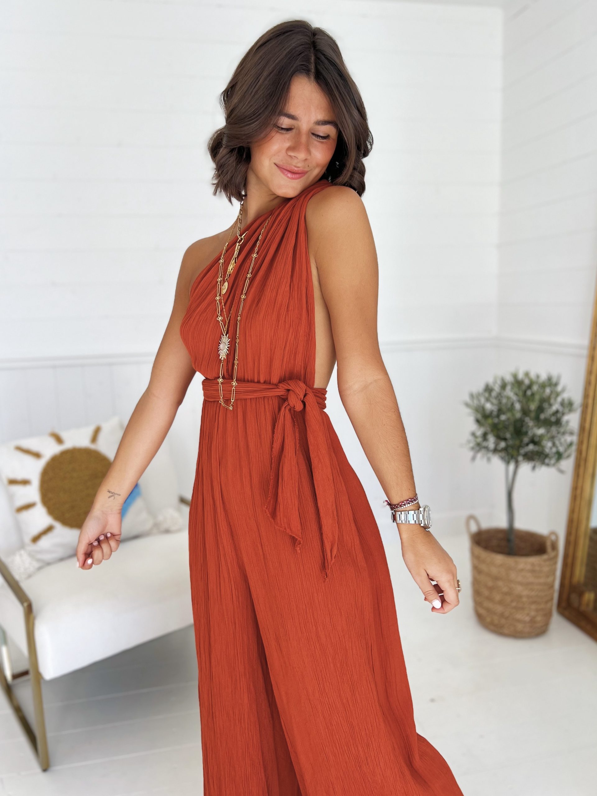 - Une combinaison dos nu élégante et sexy, parfaite pour une soirée ou une belle journée d’été.