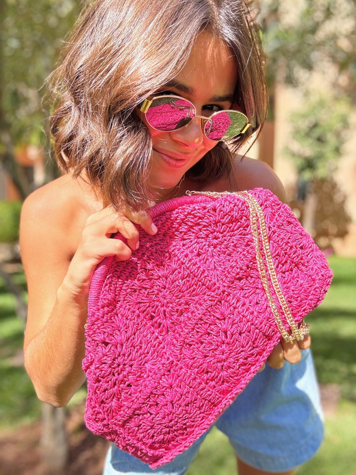 - Nous ne pouvons plus nous passer de la pochette en paille, elle est tellement pratique grâce a sa taille et sa chaine doré.