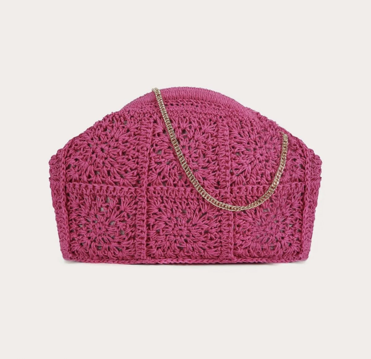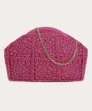 Pochette RAPHIA fuschia et sa chaine doré