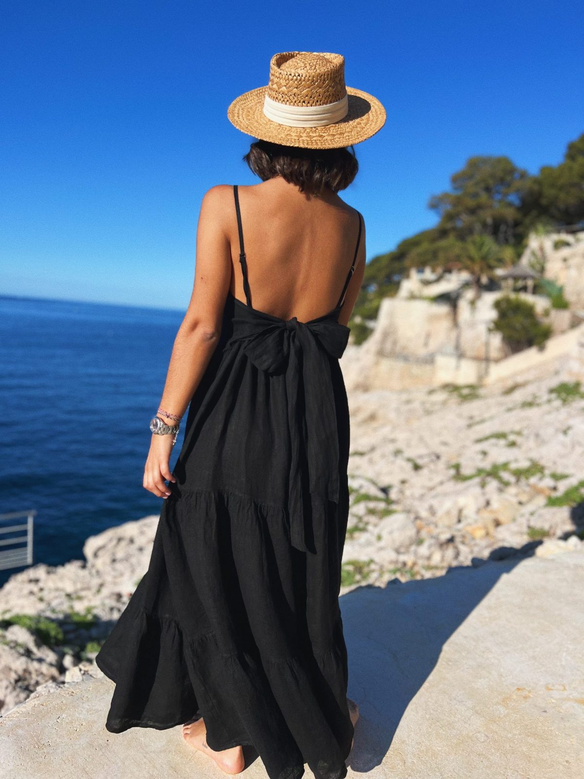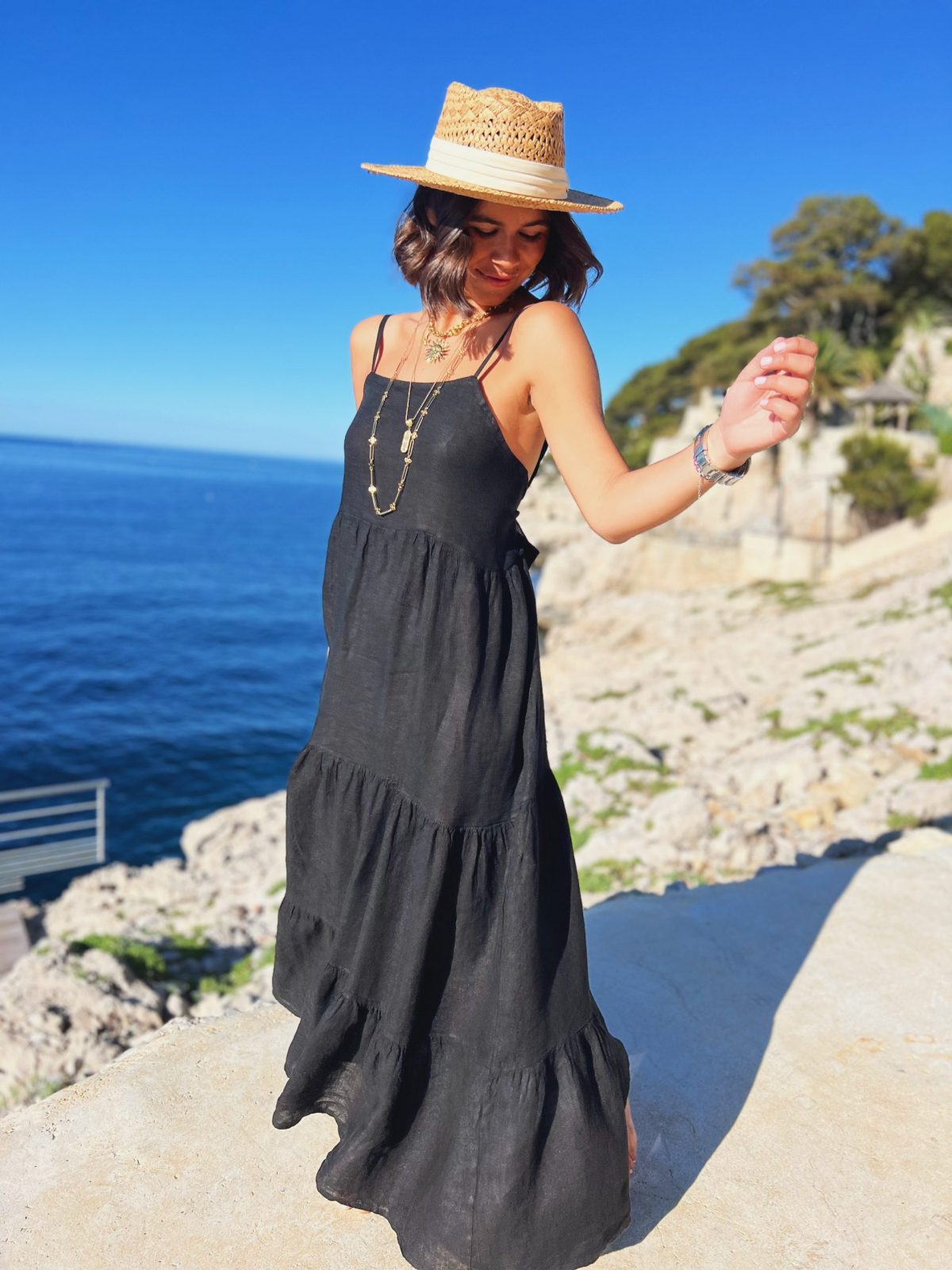 - Cette robe longue en lin est juste sublime. Son dos est magnifique grâce à ce gros nœud que vous réglez comme vs le souhaitez.