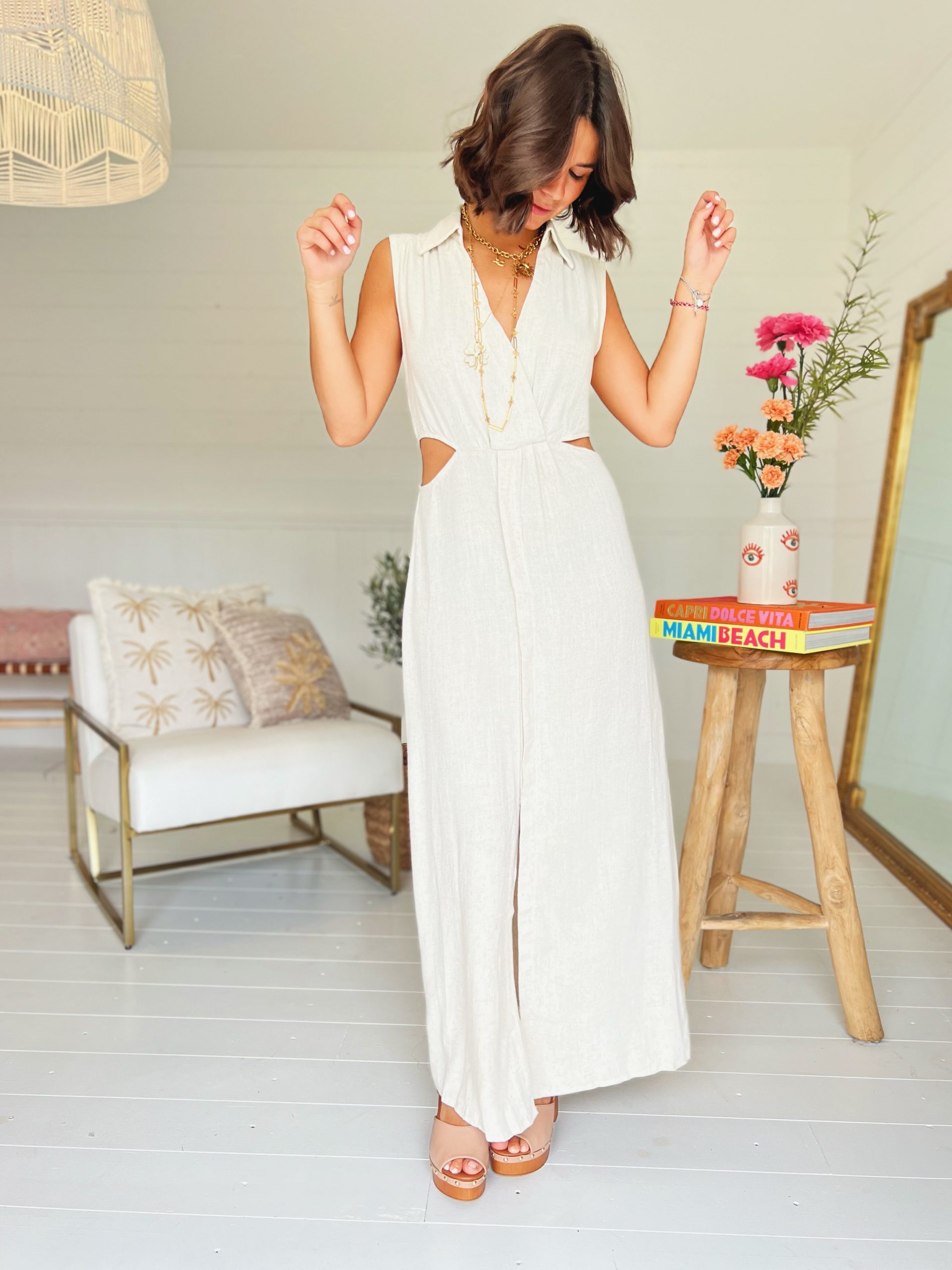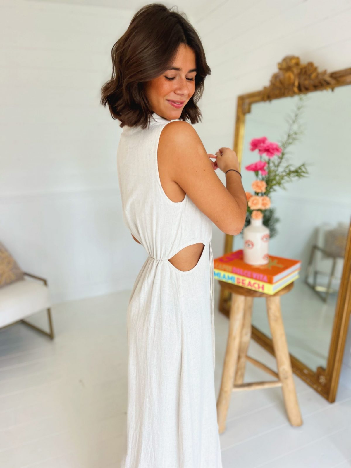 Robe TOSCANE en LIN beige