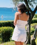 - Ce top court est en lin et coton. Il a de fines bretelles et un charmant décolleté.