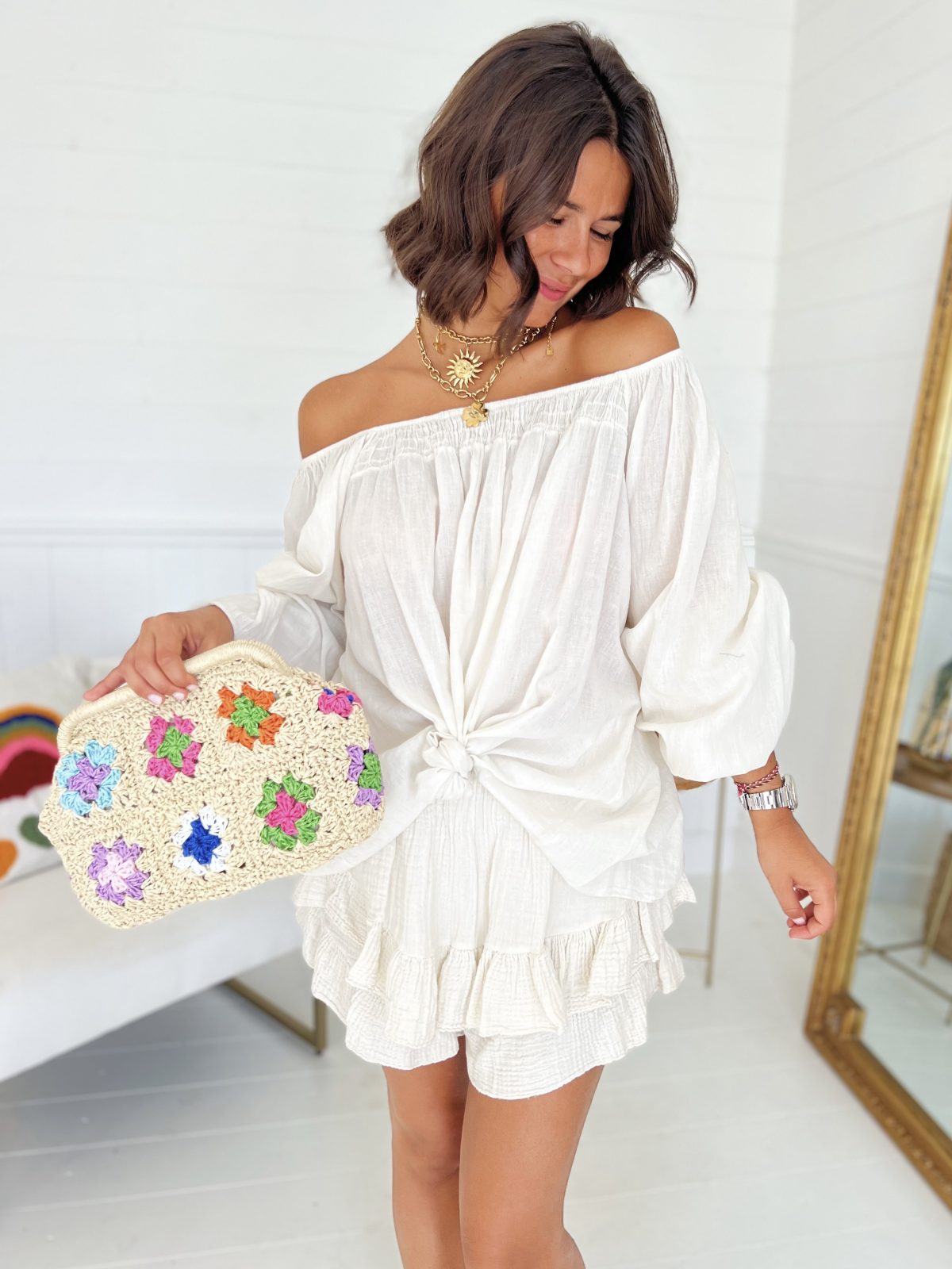 Nous craquons complètement cette année pour le top SARDAIGNE en voile de coton grâce au décolleté “bardot”, tellement féminin! On aime les épaules dégagées qui nous apporte un super style.